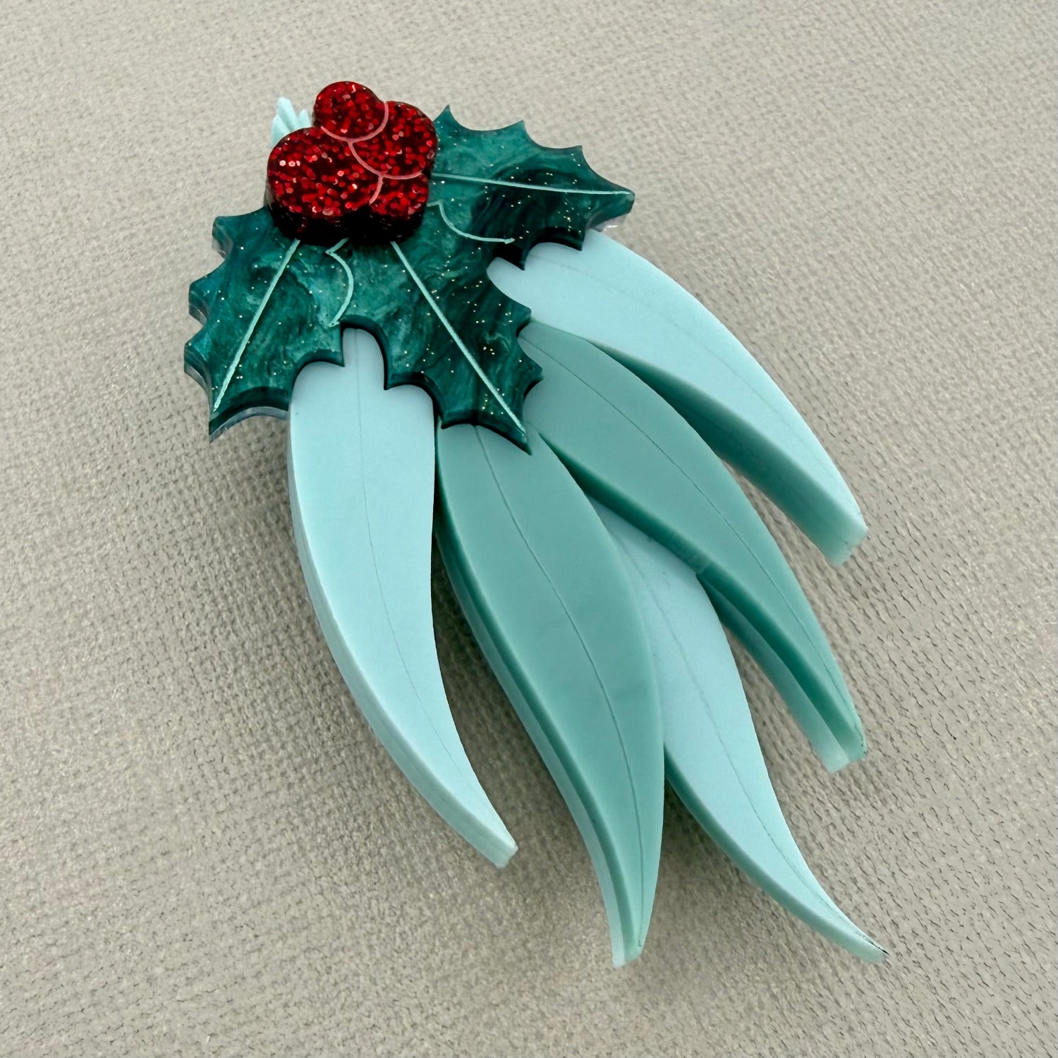 Add a touch of Australiana with this beautiful Christmas brooch, made from layers of glitter and marble acrylics.