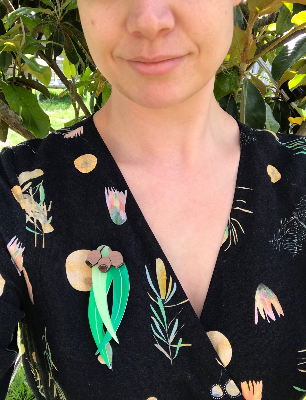 *The acrylic and resin used in this brooch have slightly different variations. The colour and pattern of each piece will vary from the next, making every brooch one-of-a-kind.