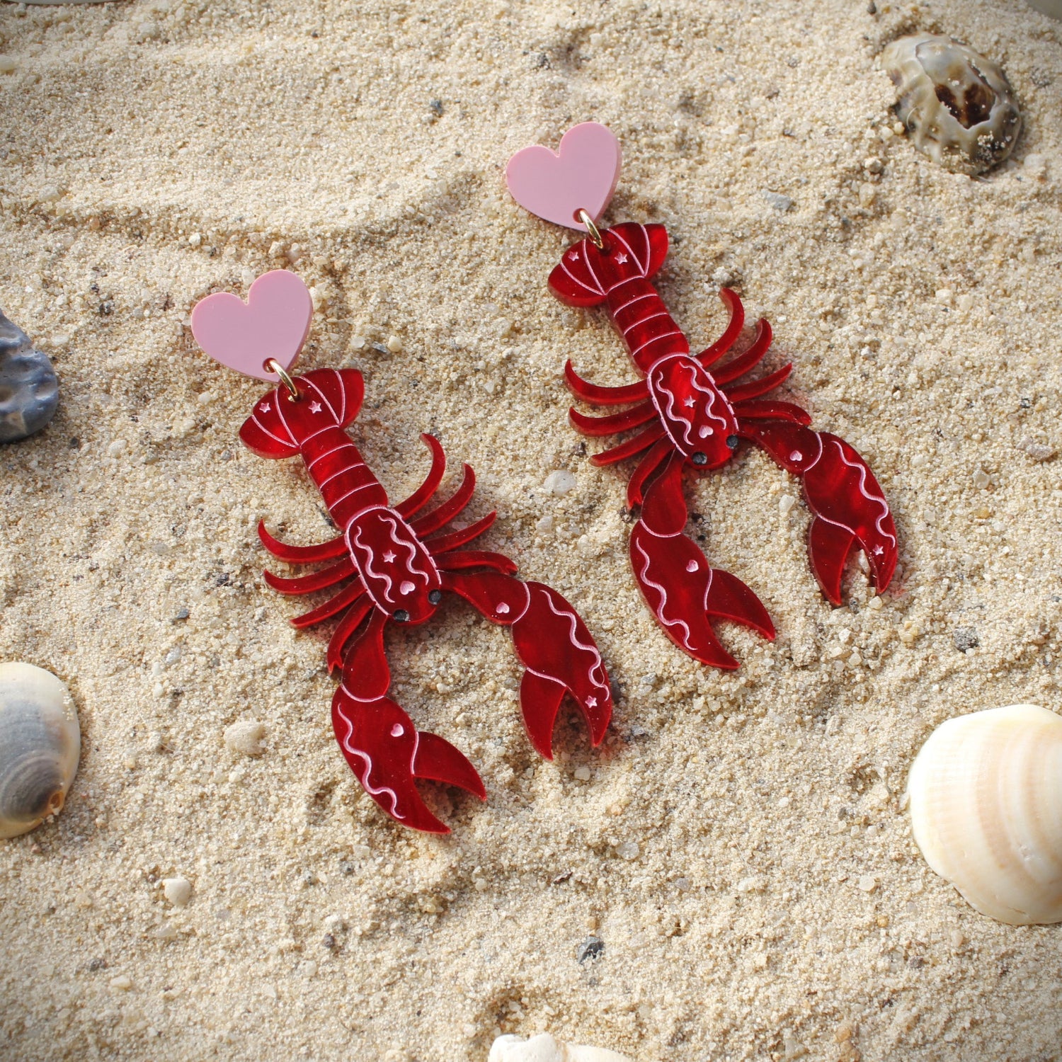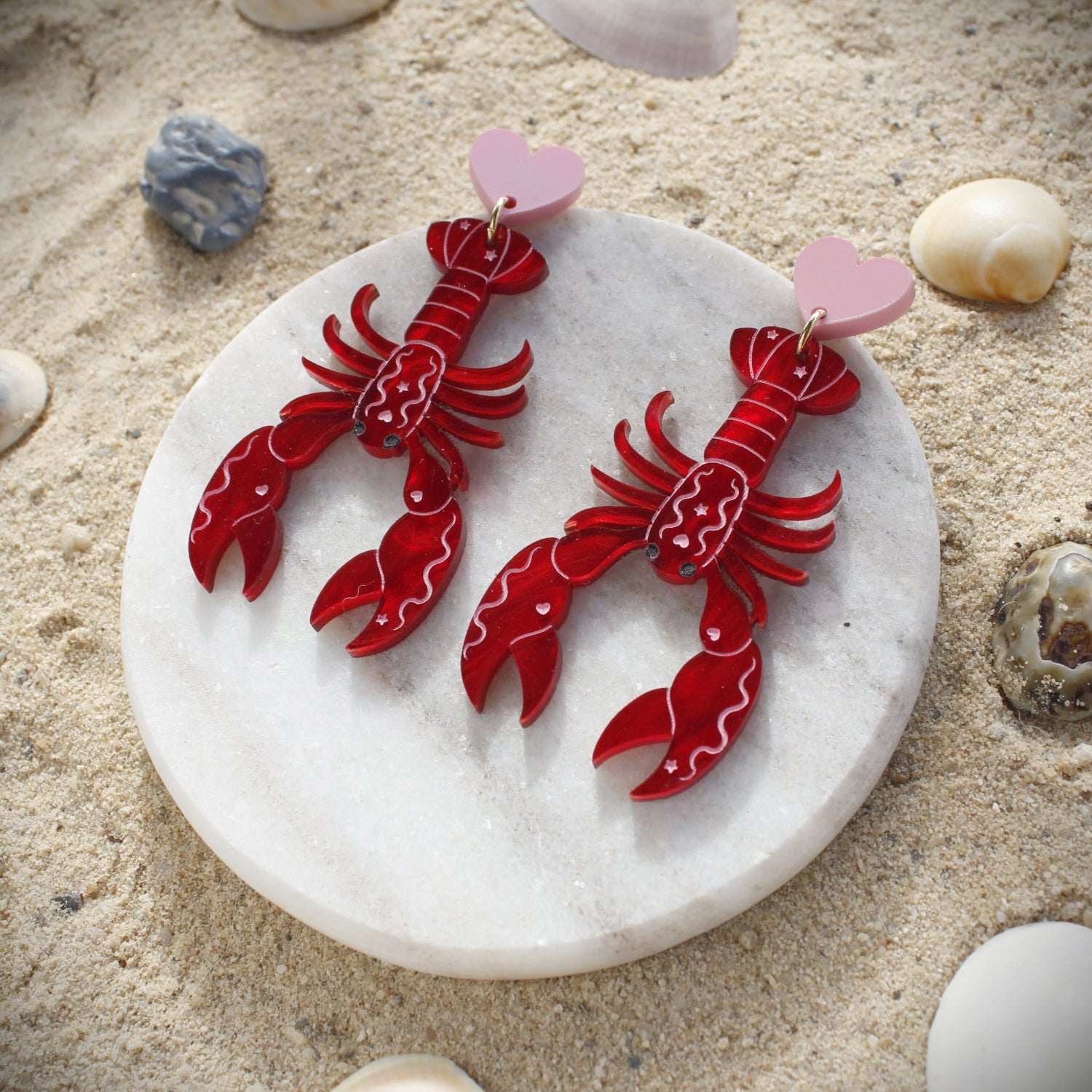 These amazing statement earrings will be sure to get you noticed. They are made from gorgeous red marble acrylic with pink painted details.