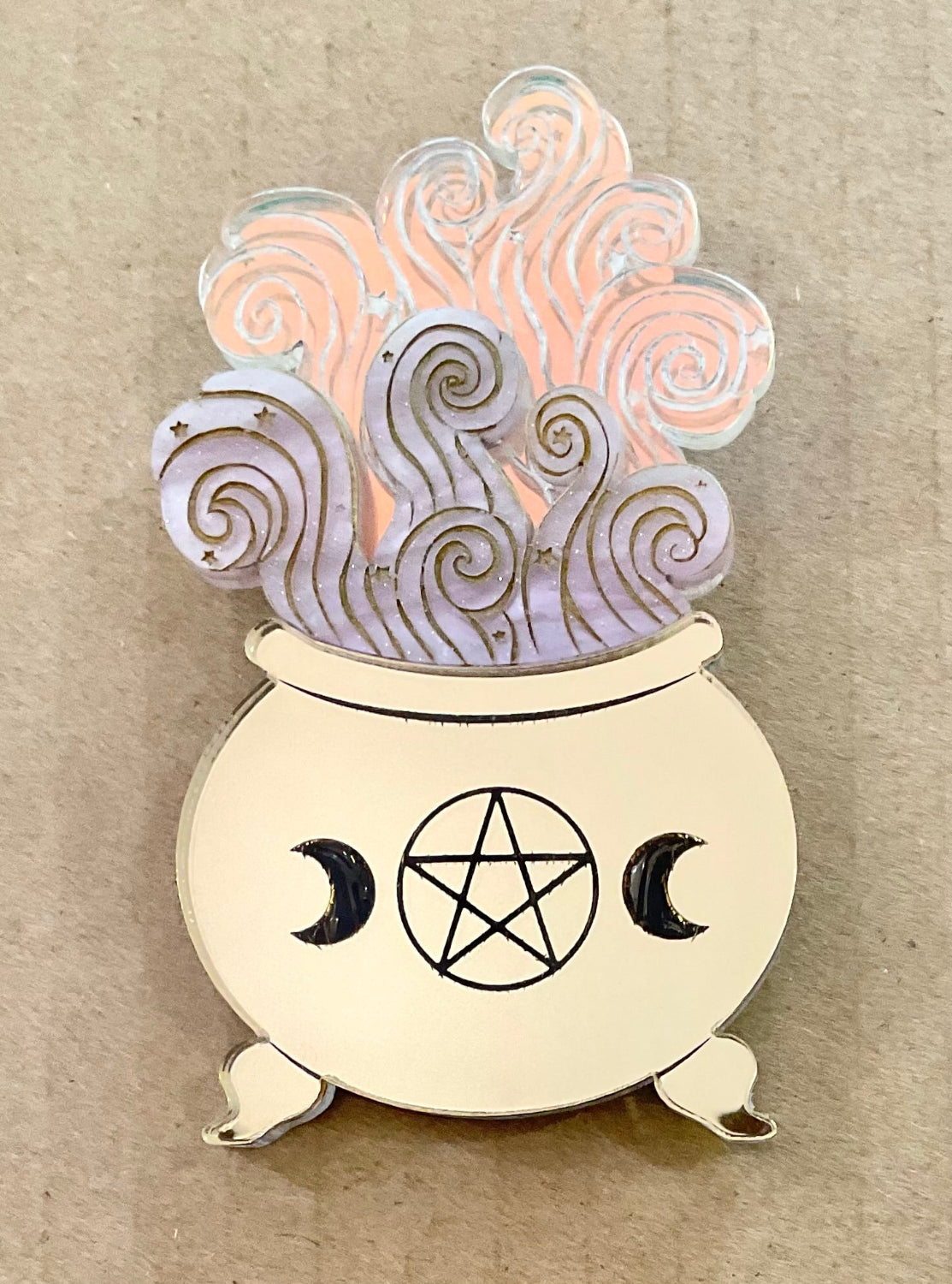Seconds: Test cut with different acrylics. Black paint fill appears fuzzy in etched pentagram.
