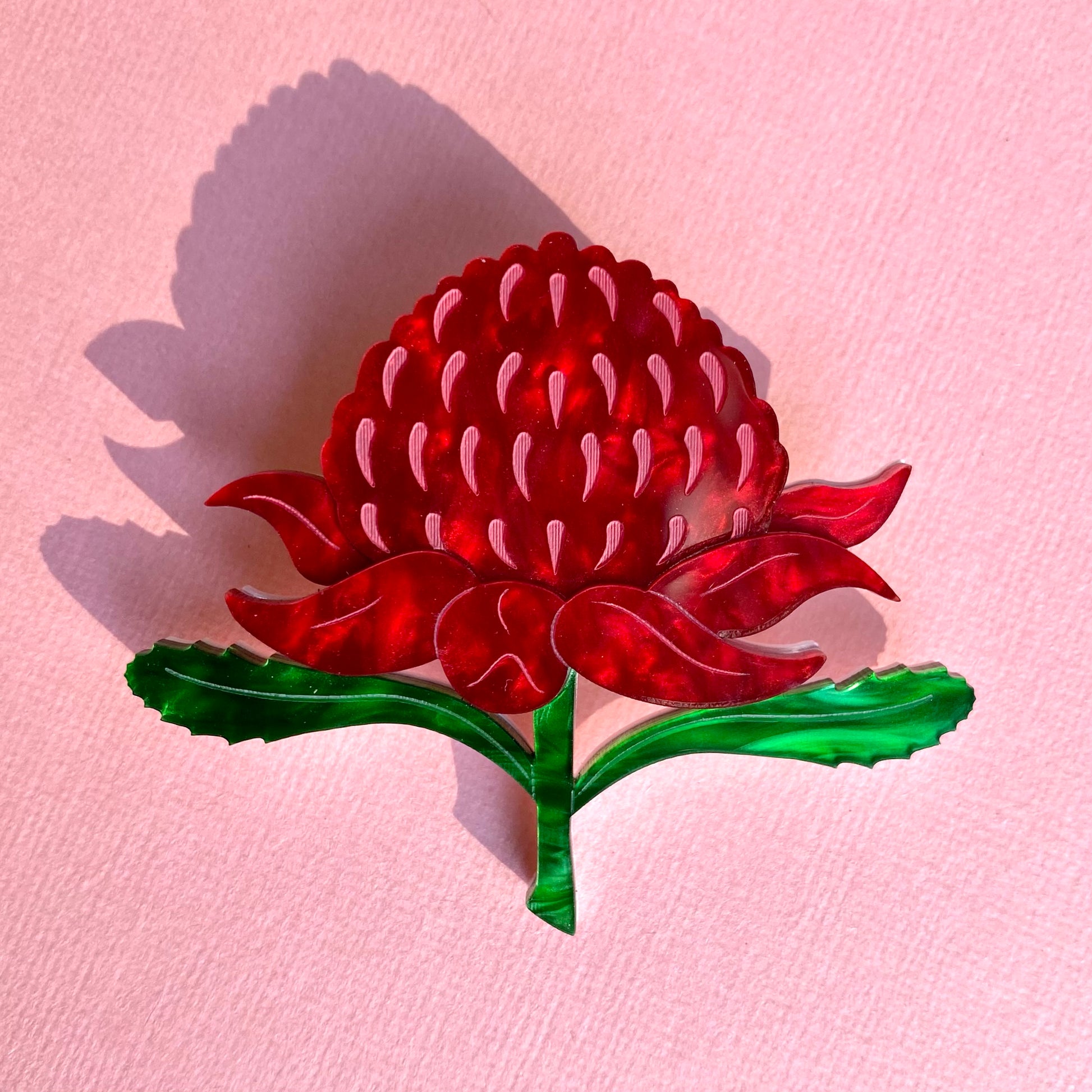 The Waratah plants are in the genus Telopea which is in the family Proteaceae. They produce bright red flowers in spring and attract a wide variety of birds. It is the floral emblem of New South Wales.