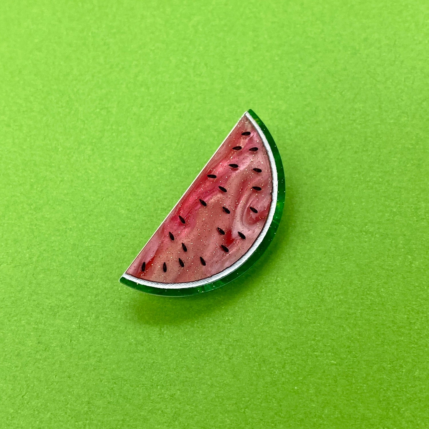 This detailed brooch is made from laser-cut and layered acrylic pieces. Each piece is hand assembled and hand painted with care in limited quantities.